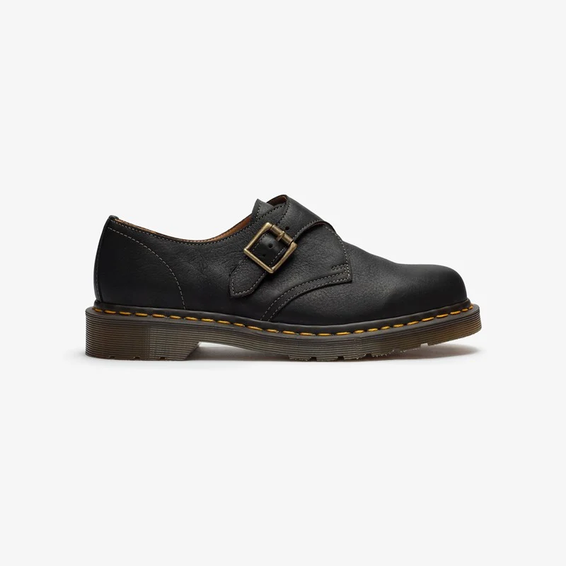 Premium fabrics, a classic silhouette and signature detailing. The Dr. Martens 1461 Monk ticks every box imaginable. Built from Natural Tumble leather, the 1461 Monk updates the OG silhouette with an alternative fastening, while the antique gold hardware, grooved DMS outsole and iconic yellow stitching round off the design.