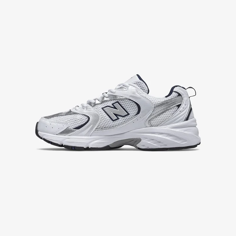 The New Balance 530 features a 2000s aesthetic, combining everyday style with the modern technology of ABZORB cushioning. Equipped with a blend of white, silver and black throughout the upper, this NB 530 features an adjustable lace-up closure and is constructed with a mix of synthetic and mesh for maximum comfort.