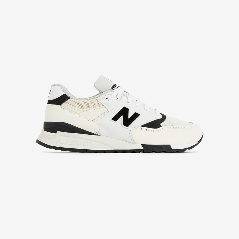 Celebrate the 30th anniversary of the New Balance 998 in style with this brand-new colourway, which combines white, black and off-white on the upper. Equipped with a breathable mesh base and soft suede overlays, this 998 features an ABZORB midsole for extra comfort and support, along with a rubber outsole.