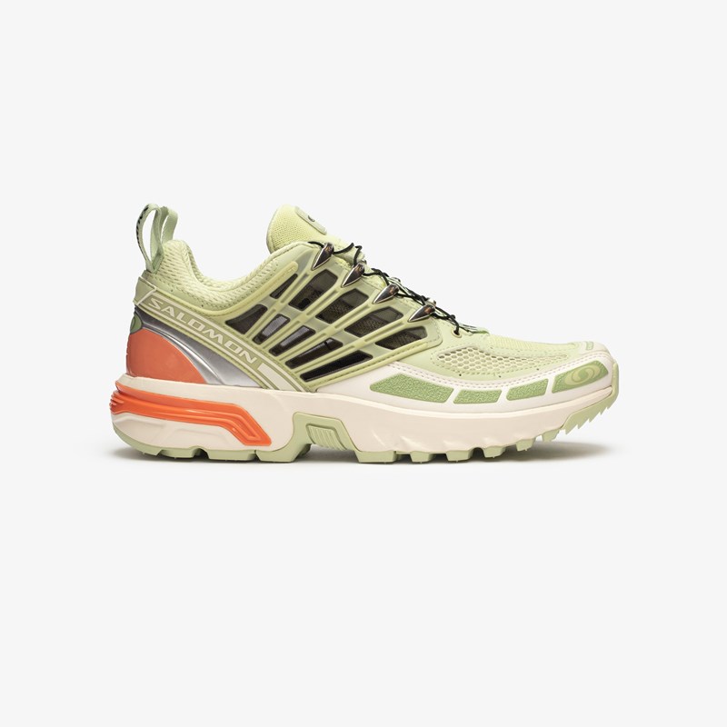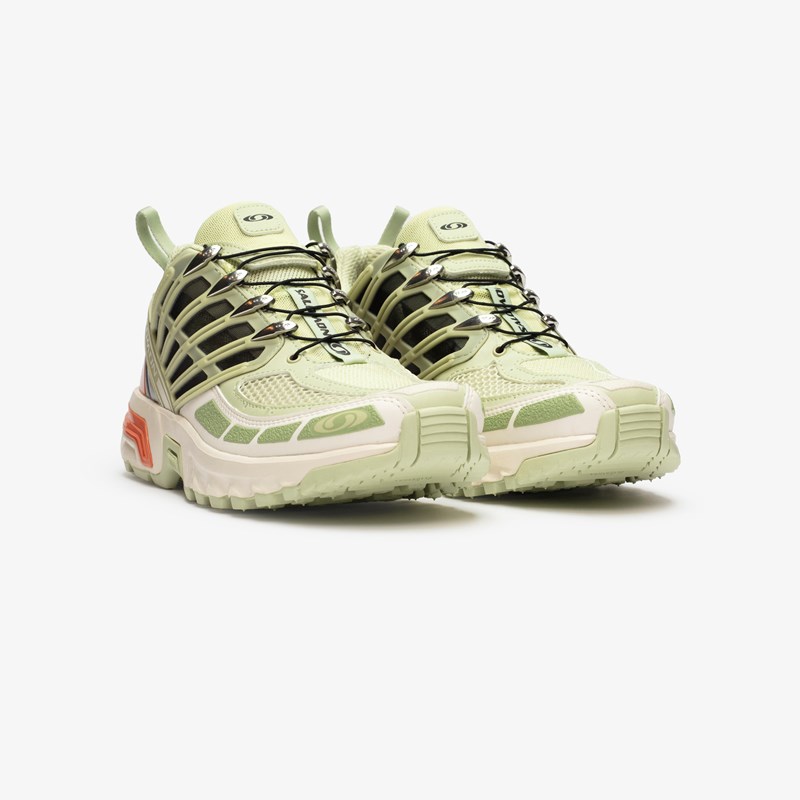 The SALOMON ACS Pro is a techy sneaker with a modernized functional design with hints of the original model from the mid-2000s. Equipped with an Agile Chassis System, the lightweight Salomon shoe has a robust Kurim structure on the upper and a 3D open Mesh construction for maximum breathability.