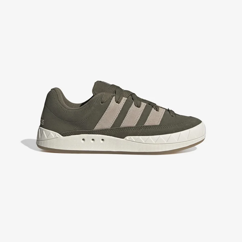 The adidas Adimatic was a skate sneaker back in the ’90s, built with a bulky olive silhouette, durable upper material, and a midsole in contrasting off-white. Constructed with soft suede, the adidas Adimatic features a padded tongue and collar with oversized three stripes on the sides and a logo embroidered at the heel counter.