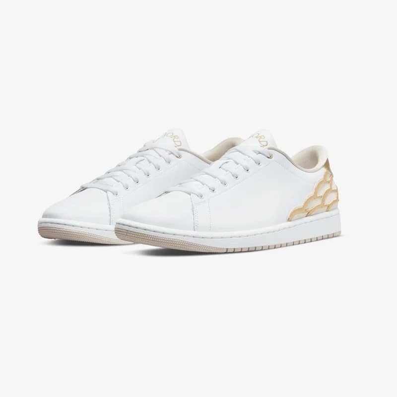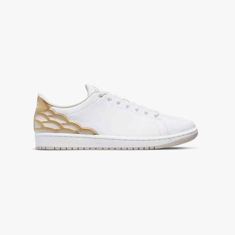 This Air Jordan 1 Centre Court is a sophisticated update of the classic Air Jordan 1 Low. Constructed with a mixed leather upper and sleek embroidered “Wings” lines around the heel, the sneaker has a double layer of cushioning and “AIR JORDAN” embroidered on the tongue.
