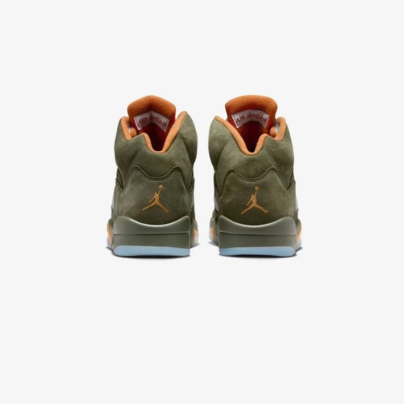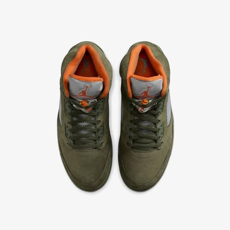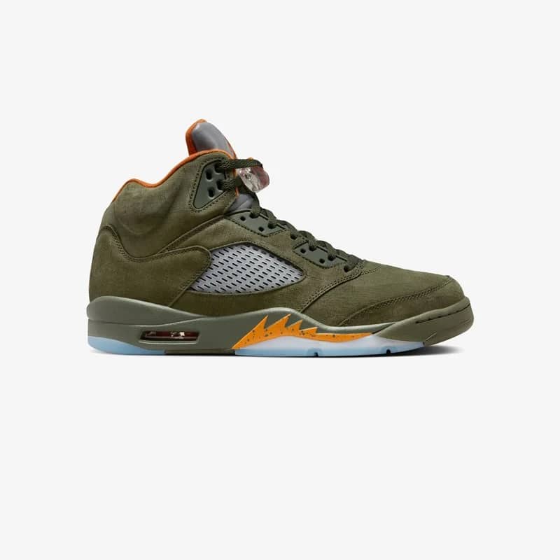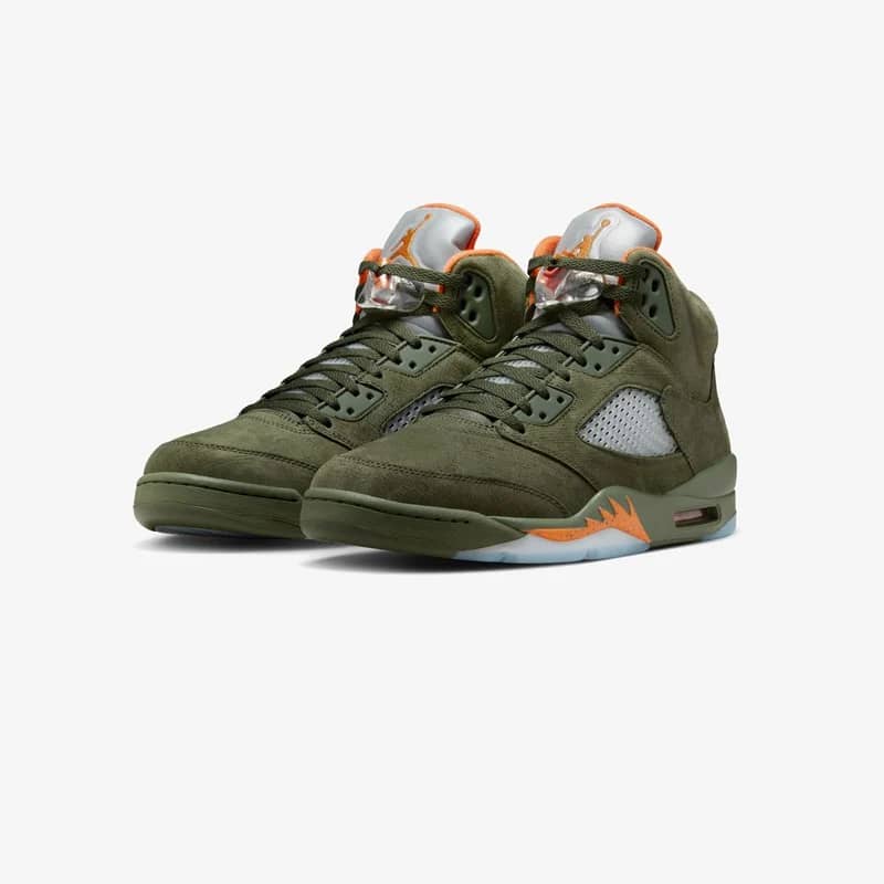 Engulfed in sneaker history and a staple among collectors, the Air Jordan 5 Retro “Olive” is back for the very first time, since 2006. Staying true to the OG with its premium suede construction and mesh detailing, this Air Jordan 5 Retro features Bright Orange accents on the inner lining, Jumpman logos on the tongues and underfoot while the shark tooth graphic on the midsole, 3M reflective elements and an icy translucent outsole round off the design.