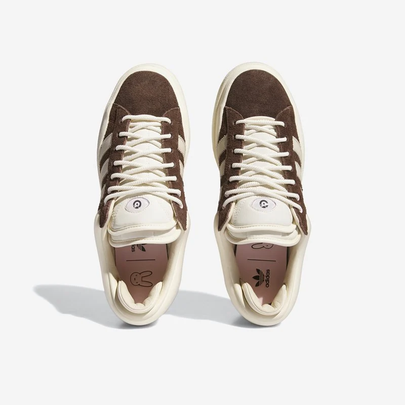 The groundbreaking partnership between adidas and Bad Bunny continues with a brand-new take on the legendary Campus. Coated in rich, earthy tones, the adidas and Bad Bunny Campus features a dark brown hairy suede material detailed by chalk white and pink accents, rounded off with the Bad Bunny all-seeing eye on the tongue and a co-branded logo on the sockliner.