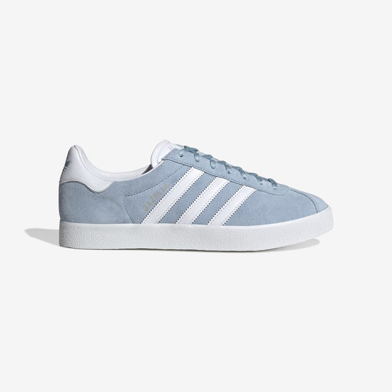 The adidas Gazelle has been a staple in the footwear game ever since its original release in the 60s, followed by its re-release in the 80s. The Gazelle 85 arrives in an eye-catching “Sky/White/Gold” colourway, combining a simple yet effective look with OG elements such as the gold coloured branding next to the iconic 3-Stripes.
