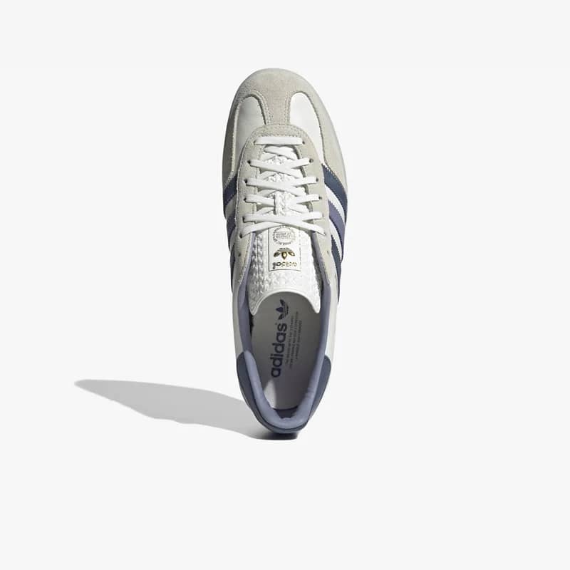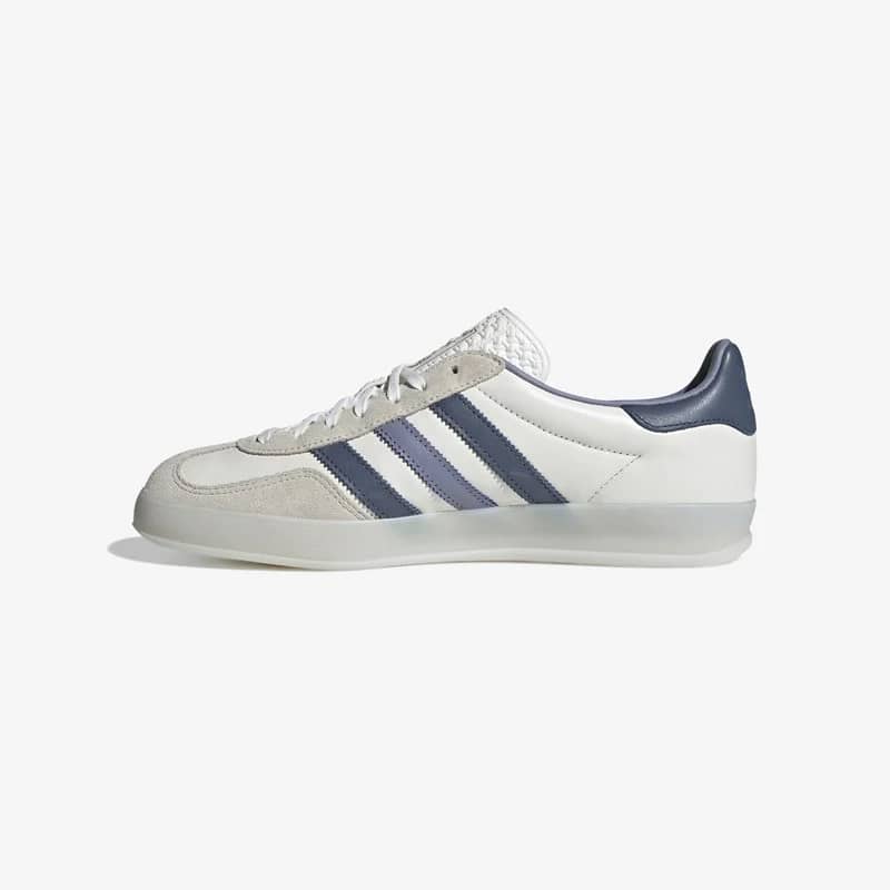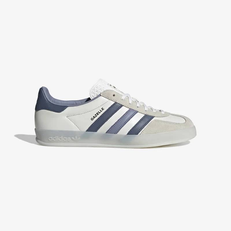 The iconic adidas Gazelle Indoor from 1979 returns including all the details that soccer fans, indie rockers and sneakerheads have loved for decades. Equipped with a premium leather upper, this Gazelle Indoor features classic gold-foiled adidas branding with hits of white, navy and off-white rounding off the design.