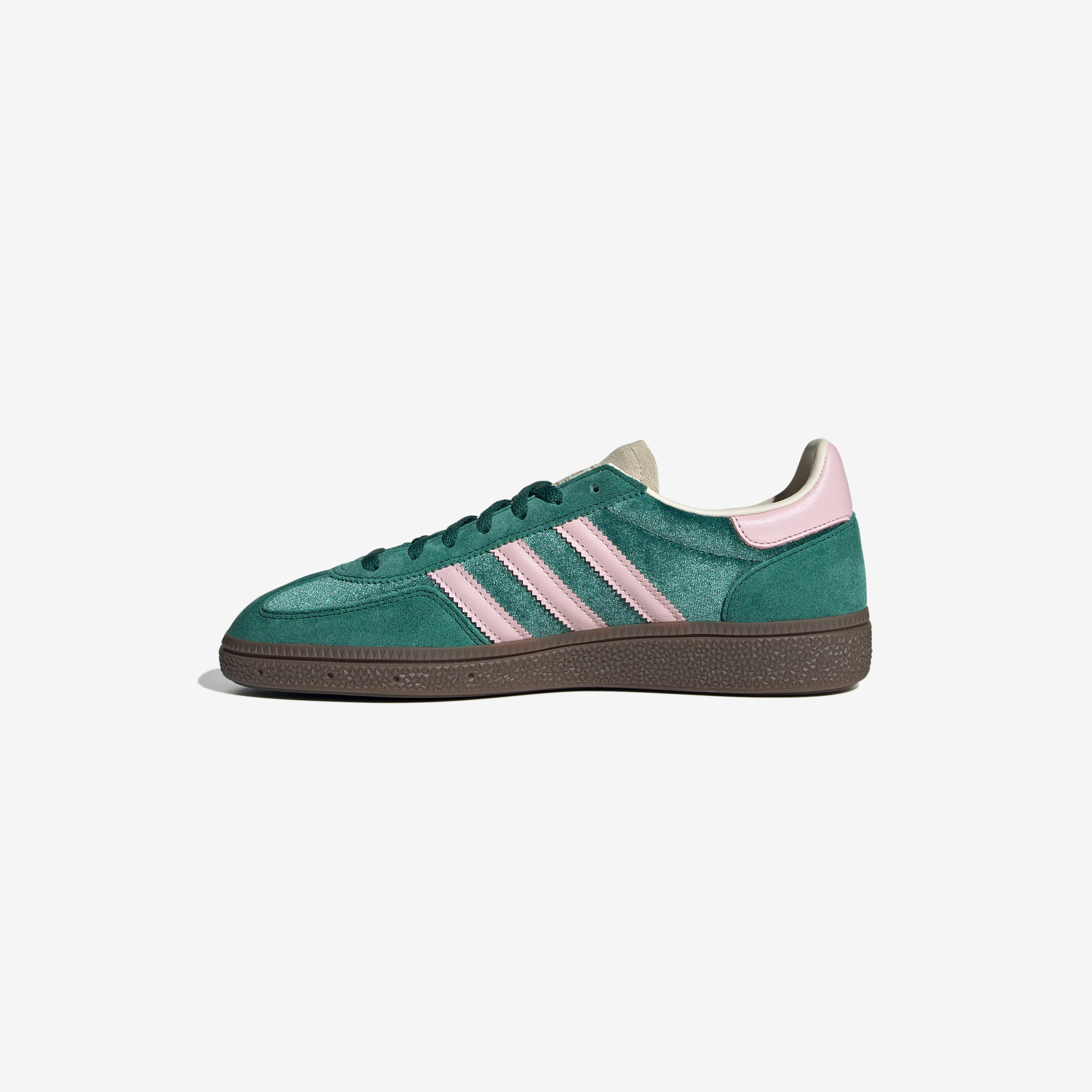Originally designed for indoor sport, the adidas Originals Handball Spezial returns in a brand-new “Collegiate Green” colorway, effortlessly fusing its street-sporty design with fresh luxe detailing. Crafted in supple velvet that envelops the foot alongside plush suede accents, this edition of the adidas Handball Spezial maintains its nostalgic vibe with signature 3-Stripes logos on the sidewall, tongue label, and insole, while a retro gum rubber outsole rounds off the design, offering multidirectional traction for your daily explorations.