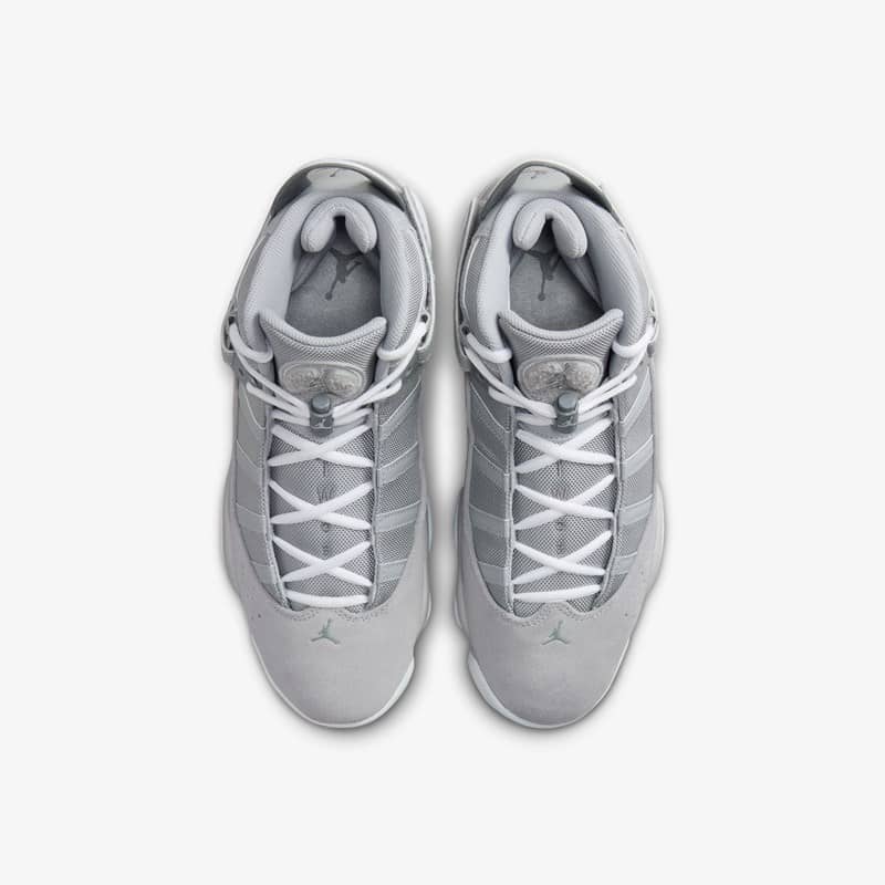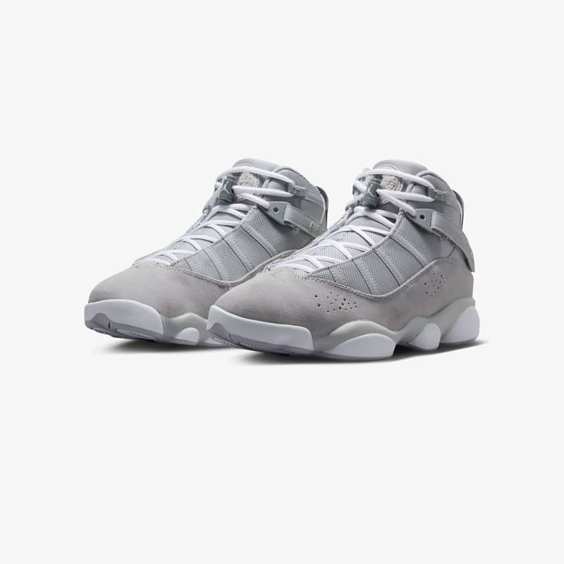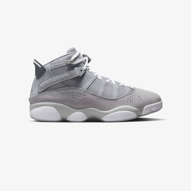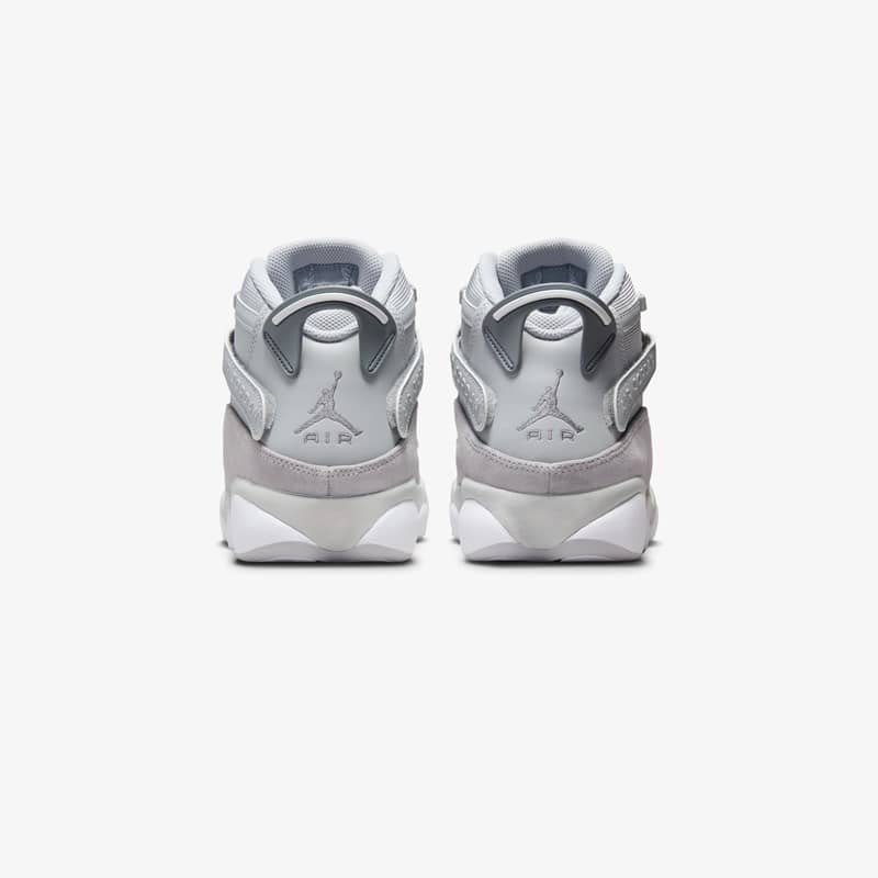 The Jordan 6 Rings sneaker combines a number of iconic Jordan Brand silhouettes such as the Air Jordan 11, Air Jordan 6, and Air Jordan 13, symbolizing Michael Jordan’s six championships with the Chicago Bulls. This “Grey Suede” iteration features a breathable mesh upper with smooth suede mudguards while luxurious leather graces the heels.