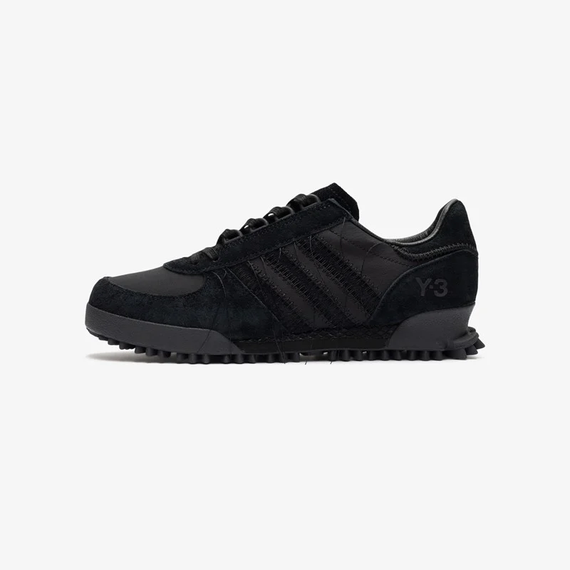 The adidas Y-3 Marathon Tr takes inspiration from the Japanese technique of Sashiko stitching. Equipped with accentuated and tonal stitching around the eyestay, heel tab, midsole and the signature 3-Stripes, with all threads intentionally hanging loosely.