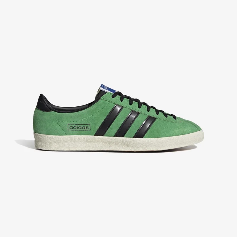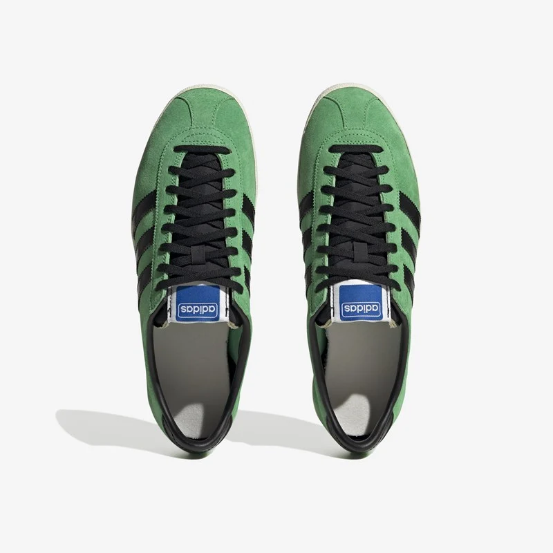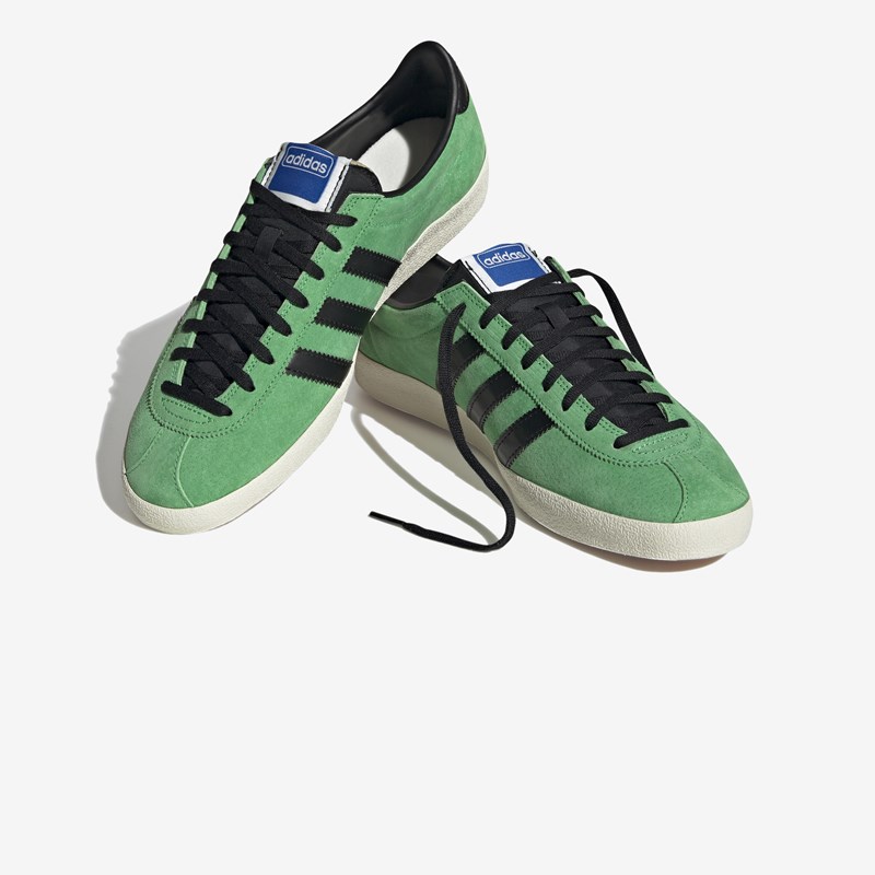 Taken straight from the depths of the extensive adidas archive, this Mexicana Prototype is based on an unreleased mock-up from the 1960s. The “Vivid Green” smooth suede upper is complimented by the three bold “Core Black” stripes, along with an unfinished silver foil sign-off, where the model name is actually missing.