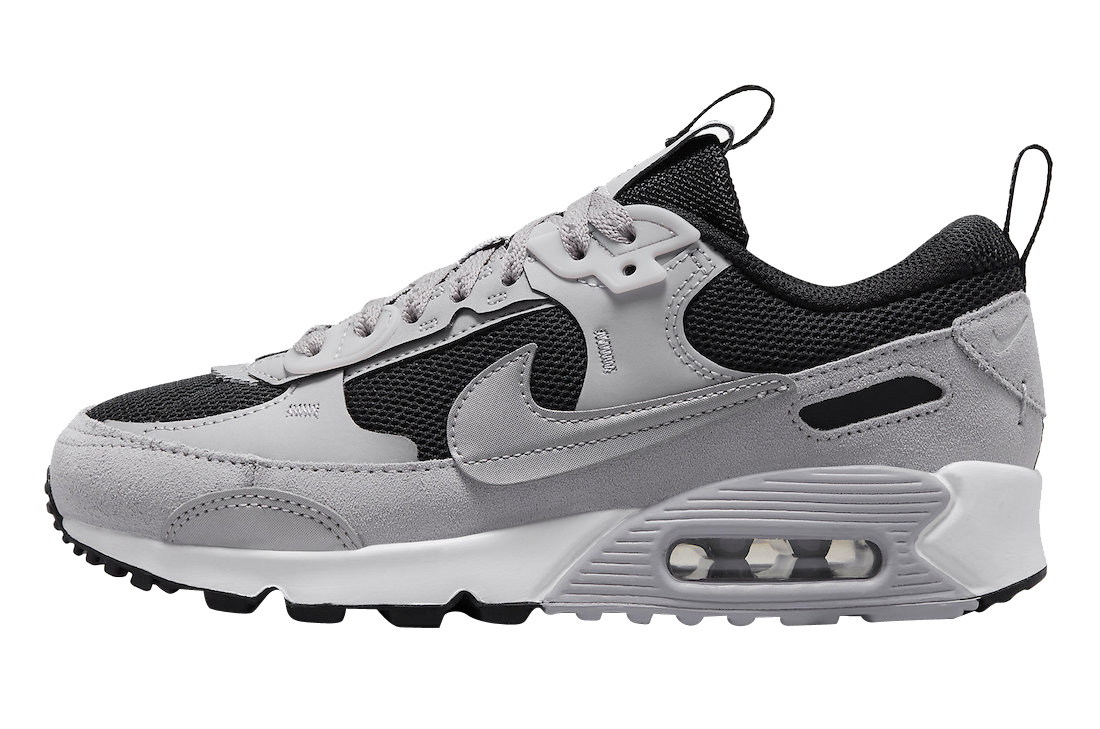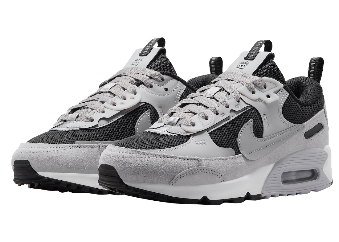 This modified rendition of the Nike Air Max 90 is highlighted by a multilayer construction on the upper which includes a black mesh on the base of this pair along with grey suede and leather placed on the overlays. New pull tabs on the tongues and heels, white midsoles, and black and grey rubber outsoles finish off this Nike Air Max 90 Futura.