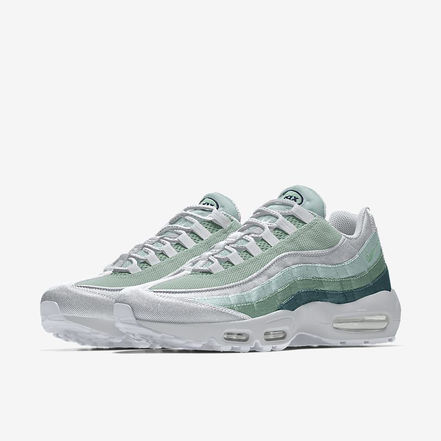 Celebrate workwear’s wide appeal with a new take on the Nike Air Max 95 By You. Utilitarian materials like polished twill and leather are rugged and durable with an undeniable nod to runway style. Perfectly understated details like contrast stitching and gradient layers add a new level of depth to this long-time favourite.