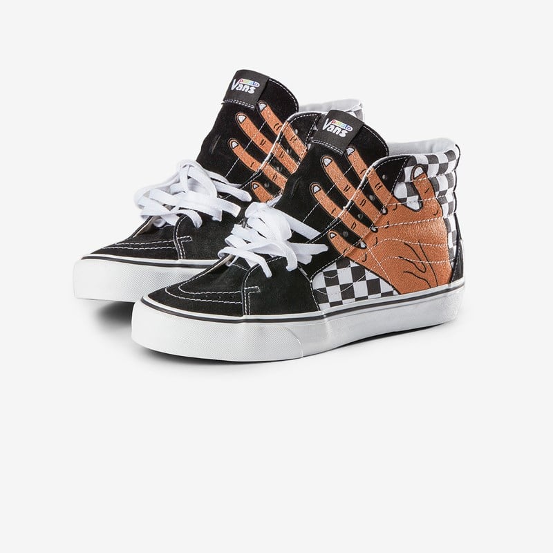 Vans Vault and bootlegger Imran Potato join forces to recreate the SK8-Hi VR3 LX. Constructed with a suede upper with embroidered “Hand” artwork across. Equipped with a signature checkerboard, the high-top retro sneaker features a vulcanized midsole.